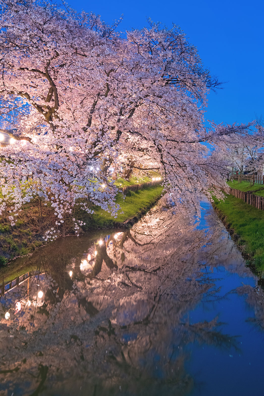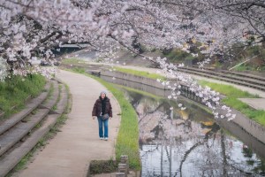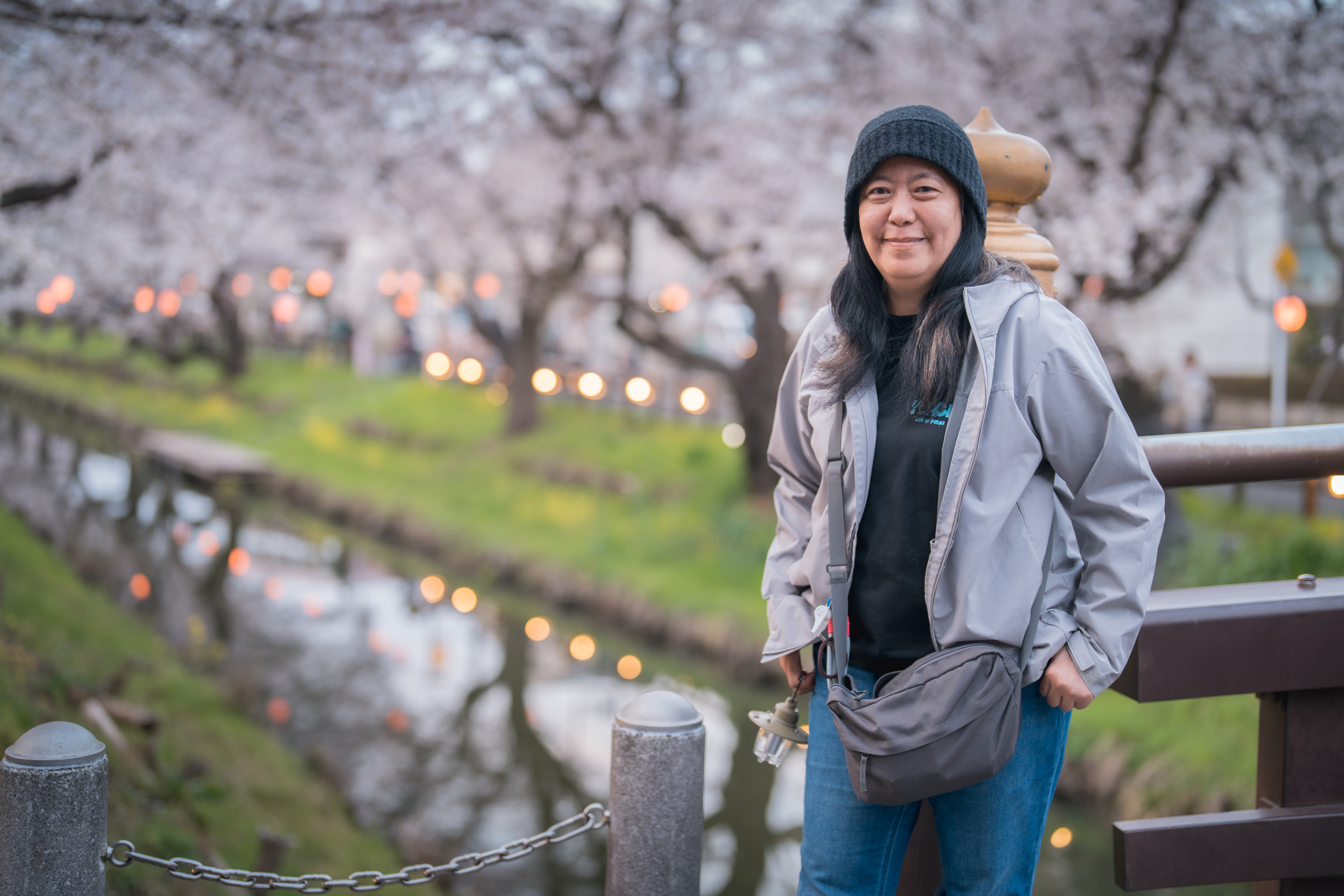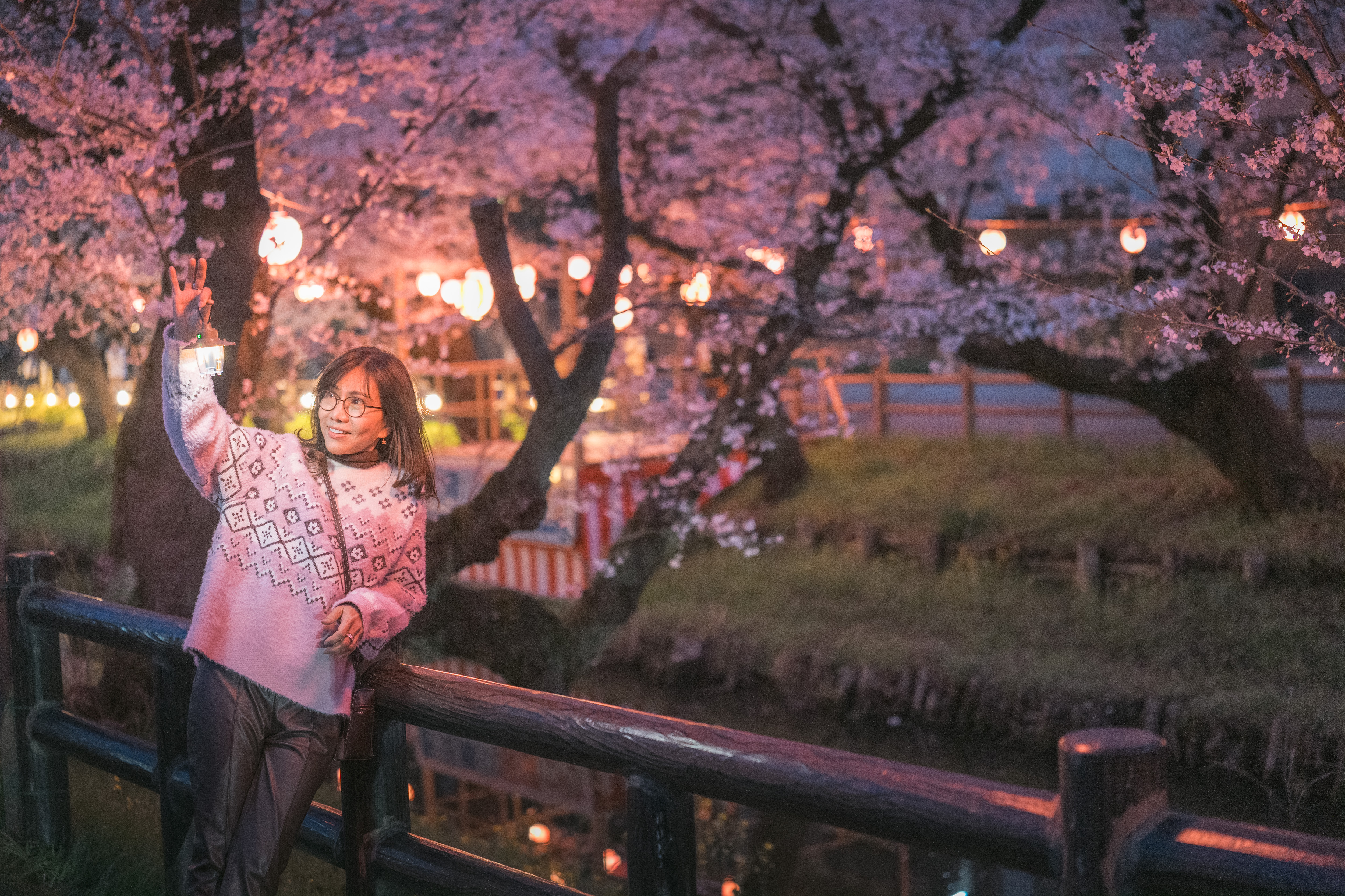 ช่วงเย็น ชมซากุระที่แม่น้ำเล็กๆ ในเมือง Shingashi มี Light-up ในช่วงเย็น
