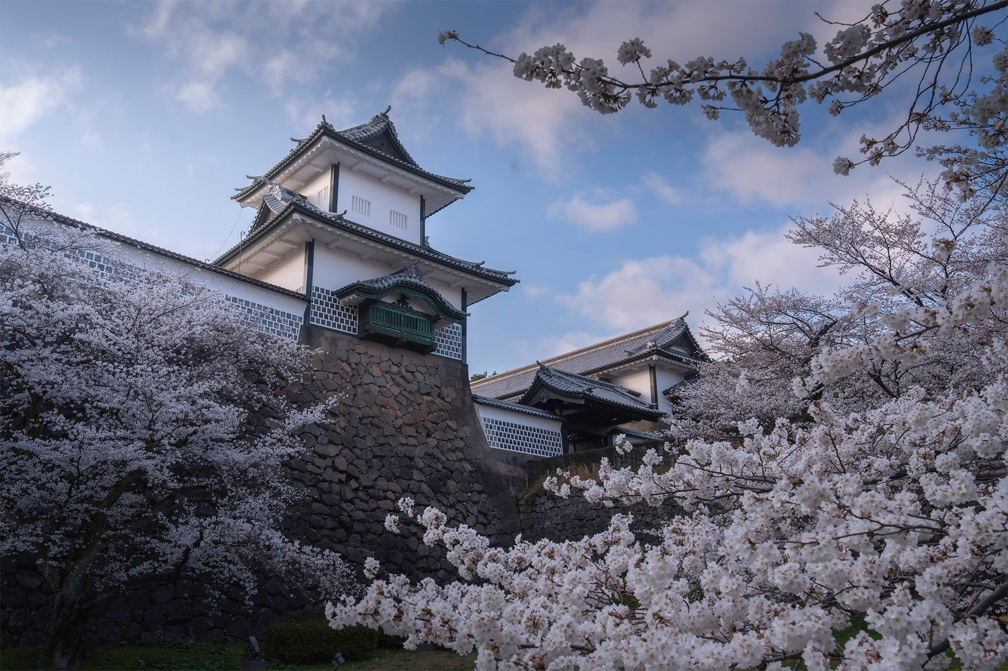Kanazawa Castle (ปราสาทคานาซาวะ, 金沢城) เป็นหนึ่งในสถานที่สำคัญทางประวัติศาสตร์ของเมืองคานาซาวะ จังหวัดอิชิคาวะ ปราสาทแห่งนี้เคยเป็นศูนย์กลางอำนาจของตระกูลมาเอดะ (Maeda Clan) ซึ่งปกครองแคว้นคากะ (Kaga Domain) มาเป็นเวลาหลายศตวรรษ ปราสาทคานาซาวะมีลักษณะเด่นคือ กำแพงสีขาว ที่สร้างจากแผ่นตะกั่ว ซึ่งนอกจากจะทำให้ดูสง่างามแล้ว ยังช่วยป้องกันไฟไหม้อีกด้วย อาคารหลักที่ได้รับการบูรณะ ได้แก่ Ishikawa-mon Gate (ประตูอิชิกาวะ), Kahoku-mon Gate, และ Gojikken Nagaya (หอคอยป้องกันยาว 50 ห้อง)