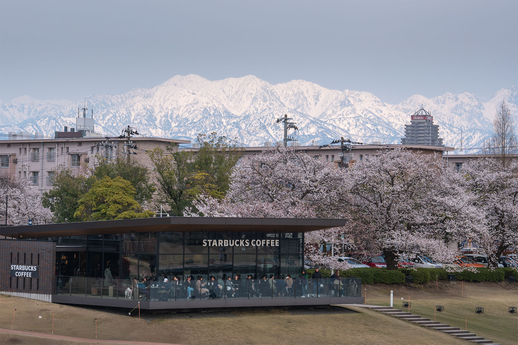 ช่วงบ่าย เดินเล่นเก็บภาพในเมือง Toyama หรือถ่ายภาพสะพาน Shinminato ที่มีฉากหลังเป็น Japan Alps