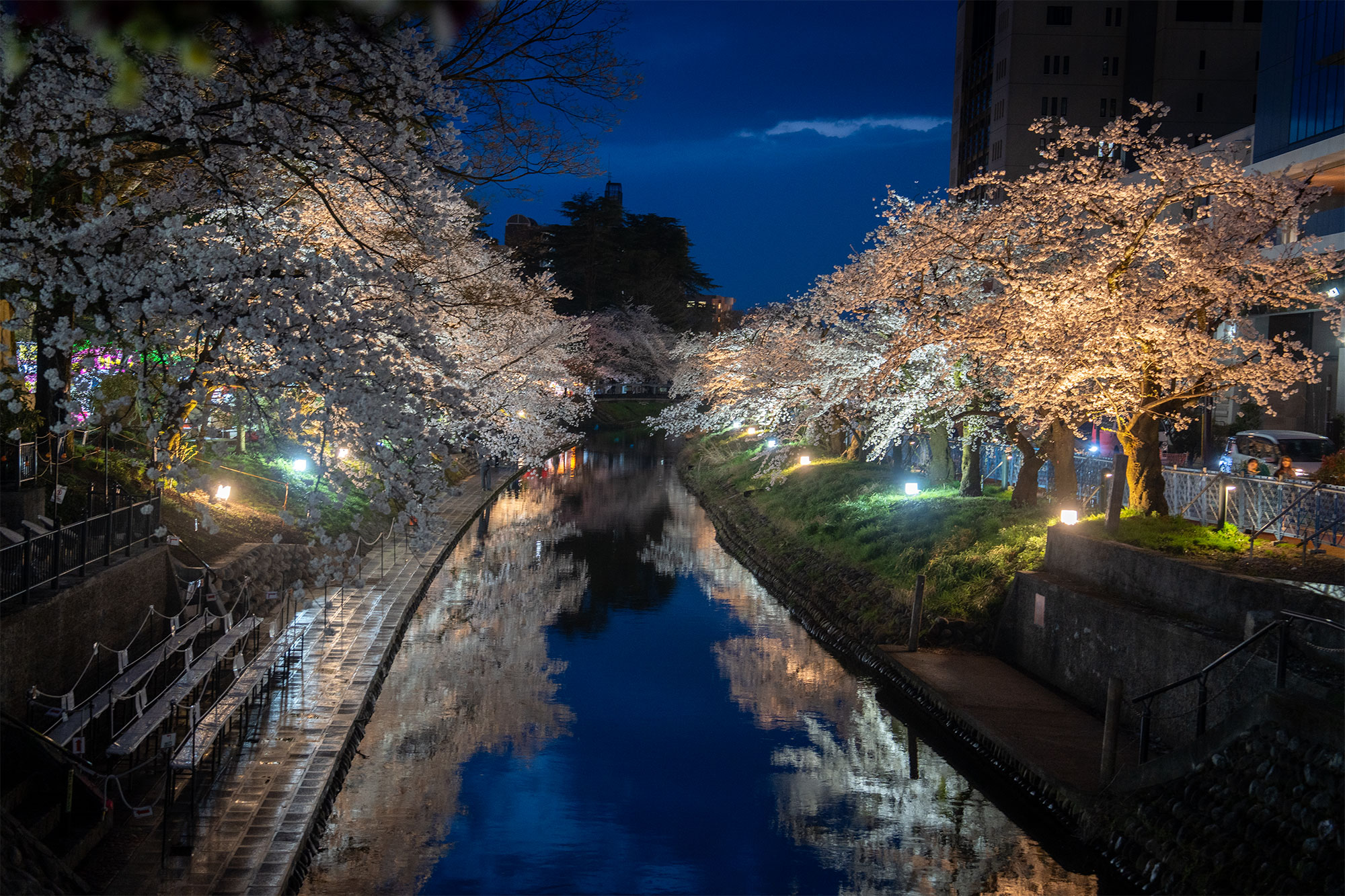 Gando River Sakura (ซากุระริมแม่น้ำกันโดะ, がんどう川の桜) สองฝั่งของแม่น้ำกันโดะ (Gando River) จะเรียงรายไปด้วยต้นซากุระที่บานสะพรั่งในช่วงฤดูใบไม้ผลิ สร้างทัศนียภาพอันงดงามราวกับอุโมงค์สีชมพู บริเวณริมแม่น้ำจะมีการจัด เทศกาลชมซากุระ (Hanami Festival) ซึ่งมีซุ้มขายอาหารท้องถิ่น ขนม และชาเขียวญี่ปุ่น มีการประดับโคมไฟยามค่ำคืน ทำให้ซากุระดูสวยงามไปอีกแบบ